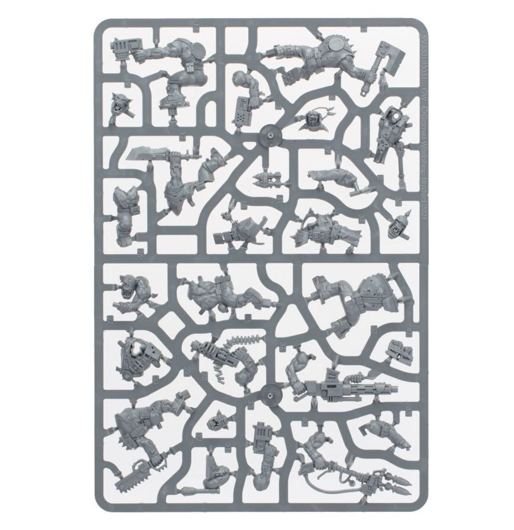 This set comprises 54 plastic components and is supplied with 10x Citadel 32mm Round Bases and 1x Ork Transfer Sheet. These miniatures are supplied unpainted and require assembly – we recommend using Citadel Plastic Glue and Citadel paints.